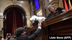 Отстраненный от власти глава Каталонии Карлес Пучдемон в свою очередь призвал Каталонию к демократическому сопротивлению, а члены регионального правительства в понедельник, несмотря на роспуск, пришли на работу.