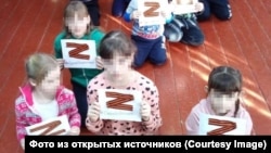 В Красноярском крае (в деревне Мачино Абанского района) ради эффектного снимка детей даже поставили на колени и выдали им в руки листочки со знаком "Z" и хештегом "своихнебросаем".