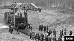 Ну а после войны в стране нужно было восстанавливать столько всего, что БАМ, как говорится, ушел на задний план. Тем не менее работы там потихоньку продолжались, и в 1951 году был пущен первый поезд от Тайшета до Усть-Кута, а чуть раньше открылось движение между Комсомольском-на-Амуре и Советской Гаванью. Сталин продолжал интересоваться стройкой, и в его голове порой возникали новые, еще более амбициозные проекты. Так, например, в 1950 году по его распоряжению началось строительство железнодорожного тоннеля на Сахалин, до которого, по представлениям вождя, должна была в итоге дотянуться Байкало-Амурская магистраль.